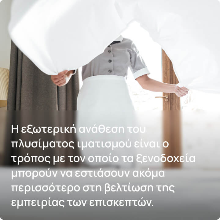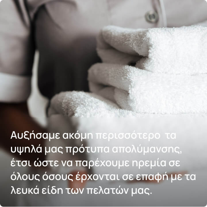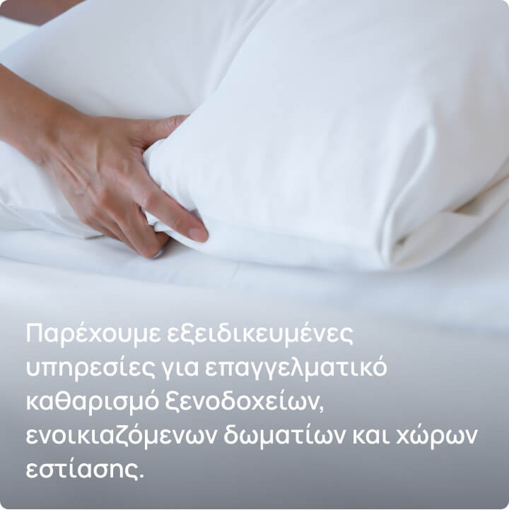 Παρέχουμε εξειδικευμένες υπηρεσίες για επαγγελματικό καθαρισμό του ιματισμού για ξενοδοχεία, ενοικιαζόμενα δωμάτια και χώρους εστίασης.