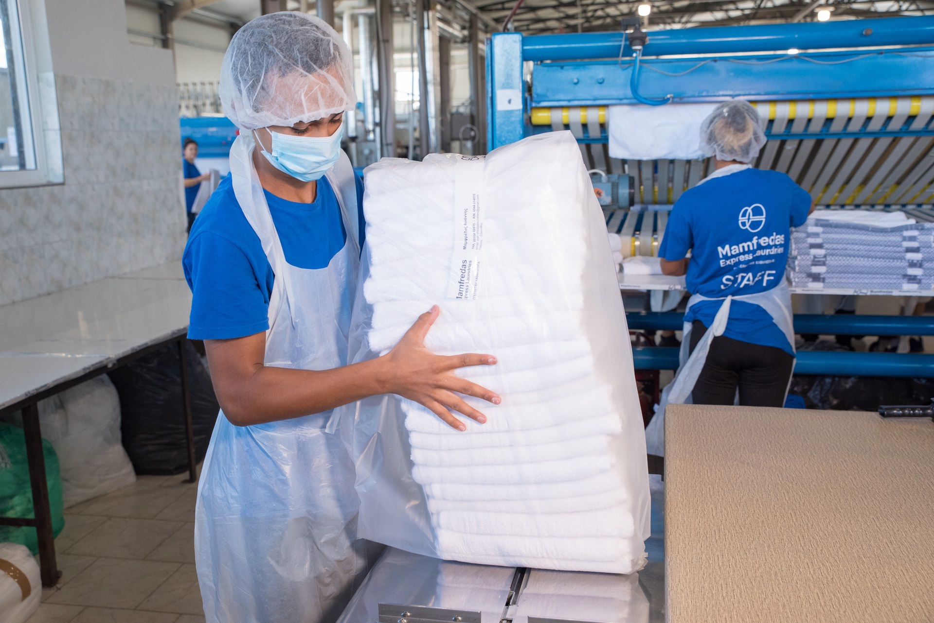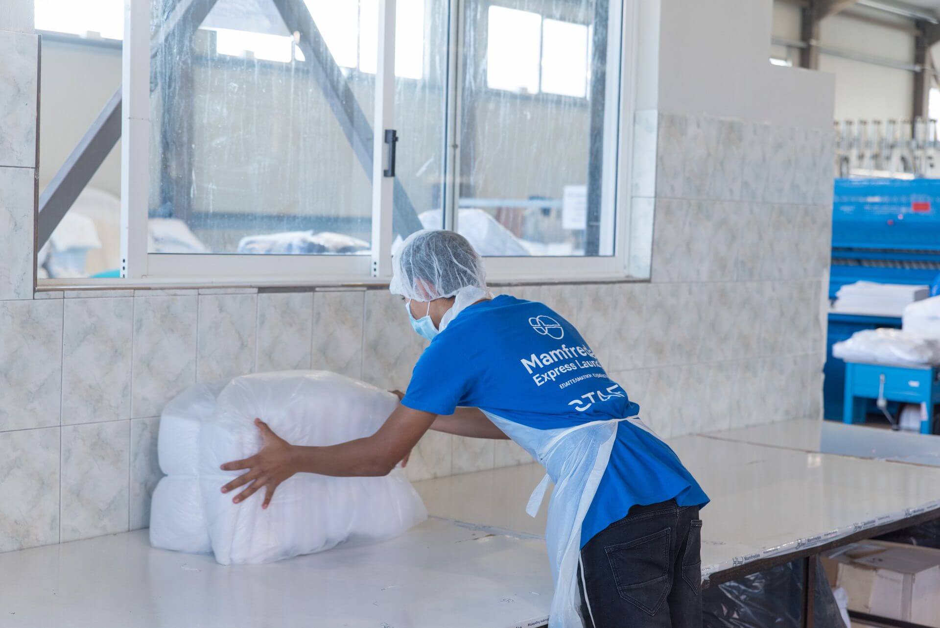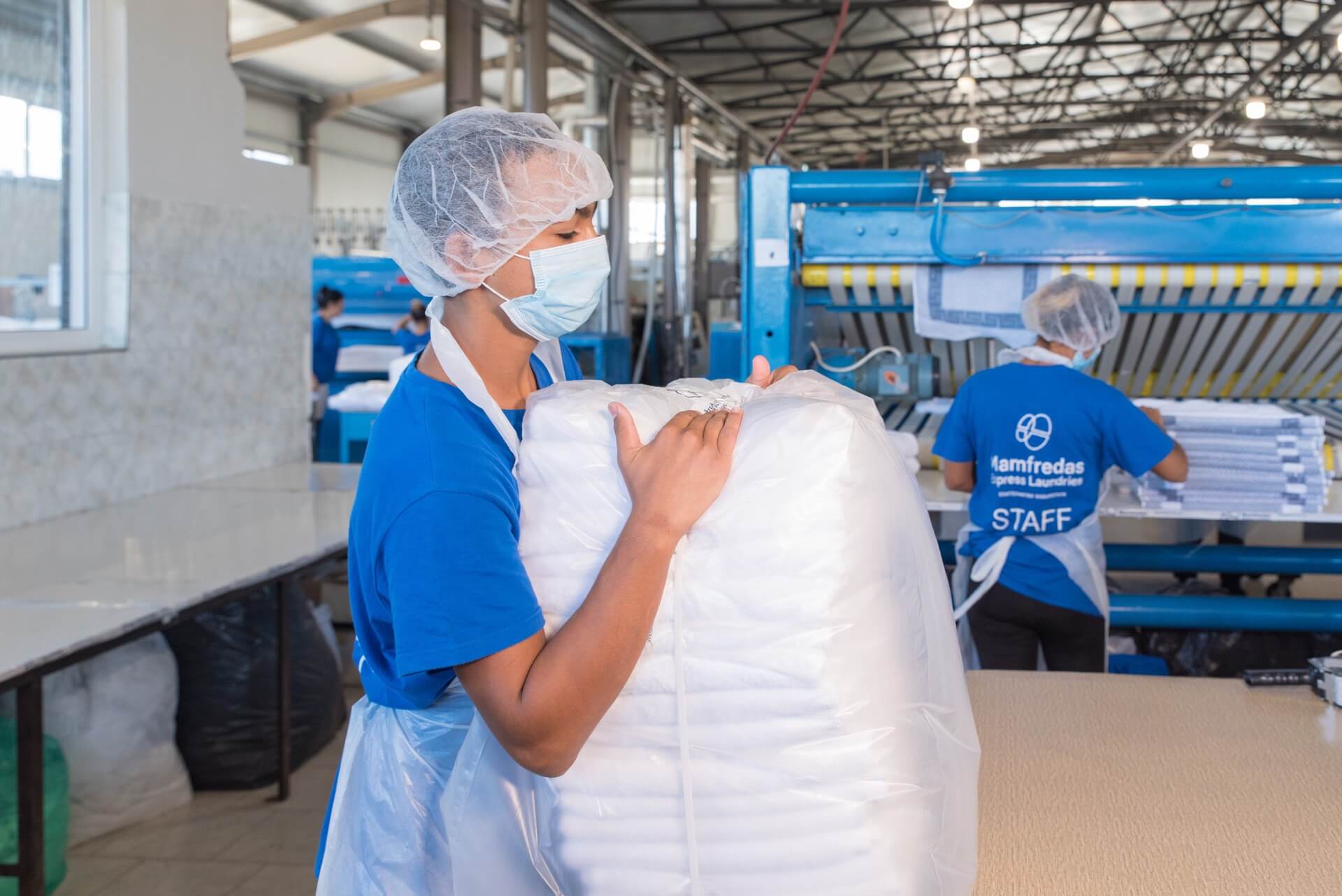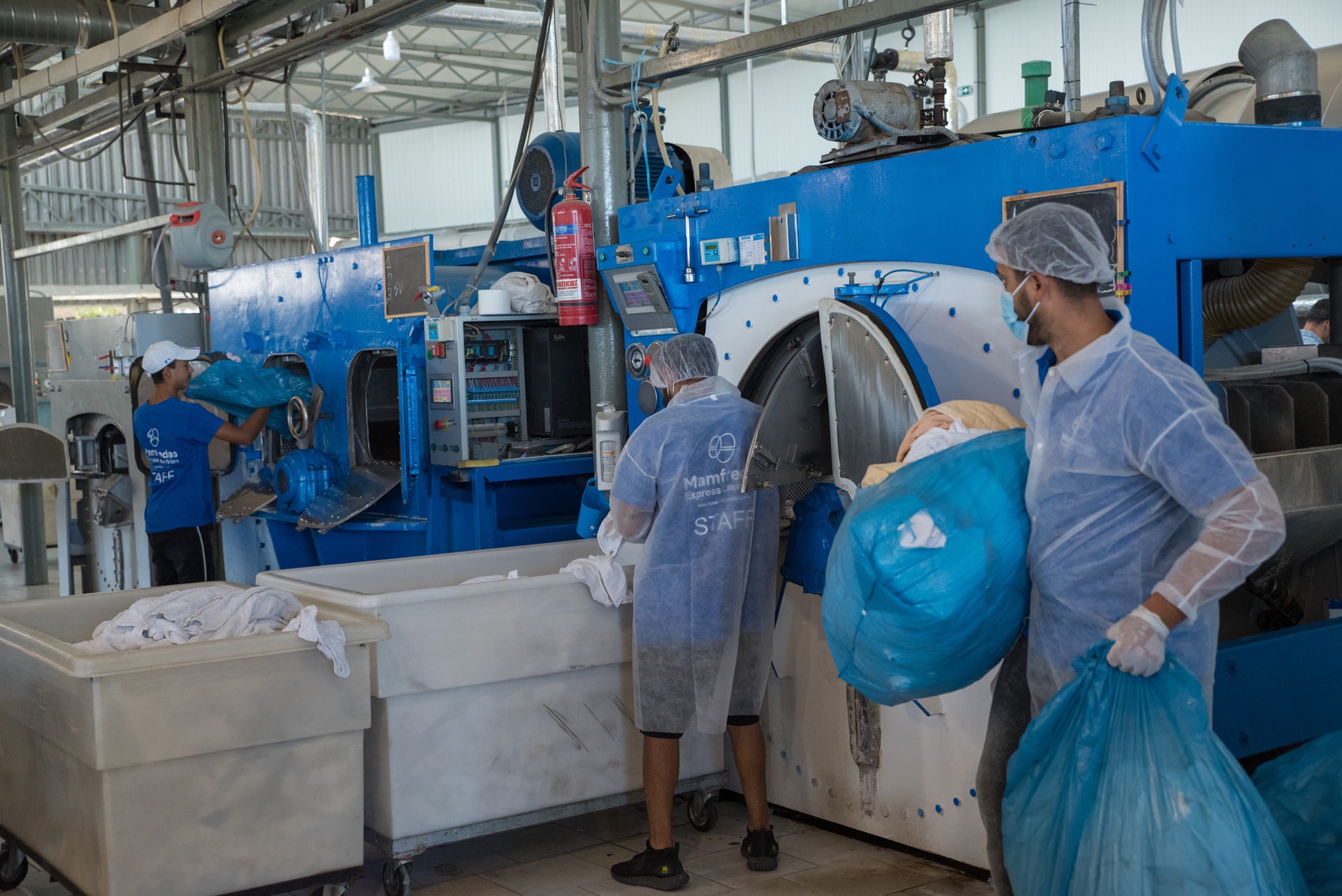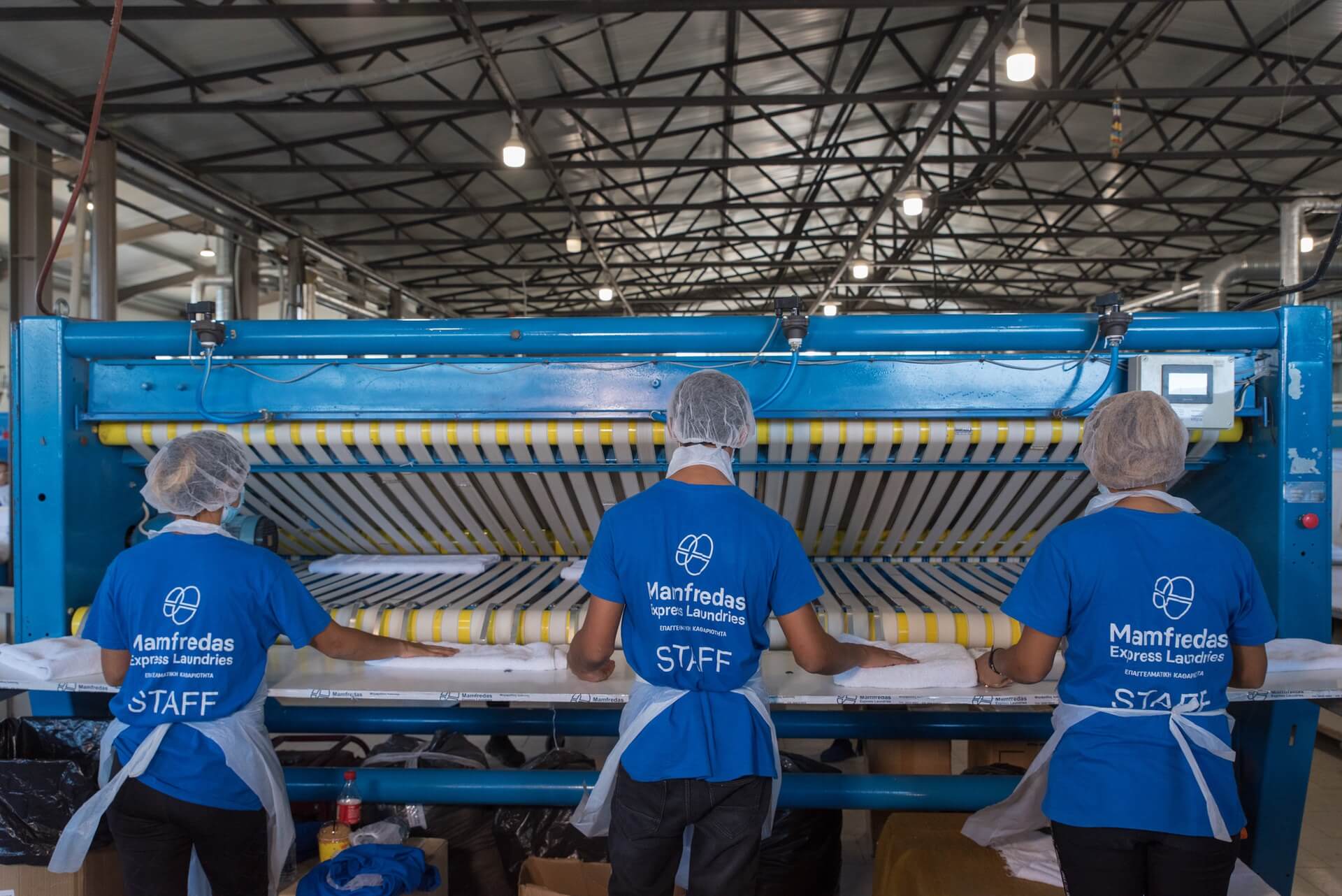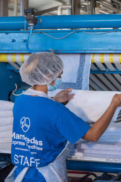 Τις σύγχρονες μονάδες πλύσης, στεγνώματος και σιδερώματος του ιματισμού διαχειρίζονται ημερησίως οι άριστα εκπαιδευμένοι εργαζόμενοί μας. Το προσωπικό μας αποτελείται από 50 και άνω εργαζομένους την περίοδο υψηλής παραγωγής, που εκπαιδεύονται διαρκώς σε νέες τεχνικές και τηρούν όλες τις προδιαγραφές υγιεινής και ασφάλειας.